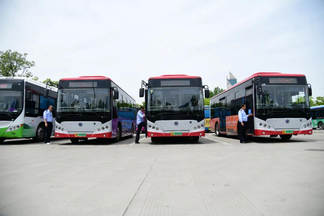 5月25日上午,艳阳高照。在市区雪枫公园公交枢纽站里,40多辆公交车在几个区域内有序停放,驾驶员师傅各自站在公交车旁,身着刚刚发放到手的工作服,一个个精神抖擞、兴高采烈。