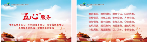 车队率先推广五心服务法,即对待工作要真心、车辆检查要细心、服务乘客要耐心、帮助乘客要热心、救助乘客要爱心”的“五心服务”工作准则。十年来,无一例较大及以上事故发生,每月保持正班率超过99%以上,安全生产形势持续稳定。严格遵守安全纪律,发挥安全文明带头作用。根据乘客不同需求,贴心放置便民服务袋,配备晕车药、创可贴、一次性口罩等。积极发挥示范带头作用,推广平安车队的营运模式。强化安全教育培训,筑牢安全思想意识。树立“安全生产,青年当先”的思想理念。采用小班化、站点化的教育培训方式,宣传贯彻安全文化理念。加大隐患排查力度,守牢安全生产防线。车队立足自身生产实际,扛实安全生产主体责任,发挥好“一线主力军”作用,从源头上把好安全生产关,筑牢安全防护堤。