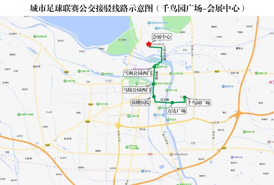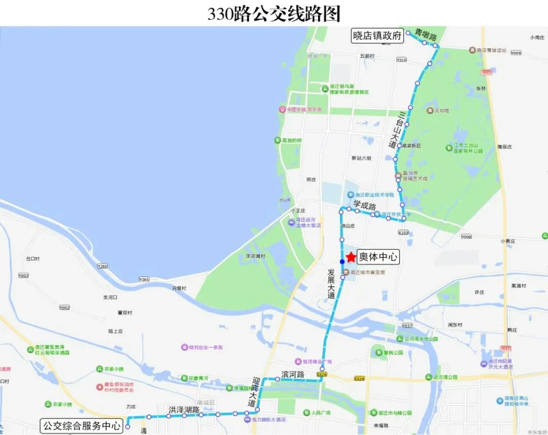 具体线路:洪泽湖路--发展大道--奥体路--会展中心(奥莱广场)
