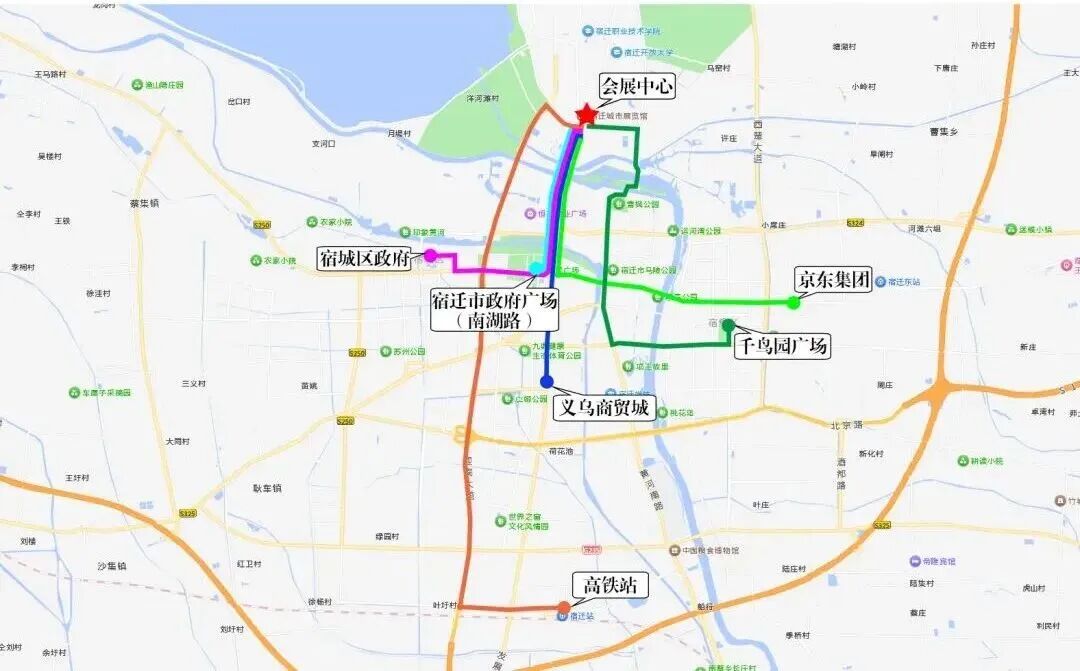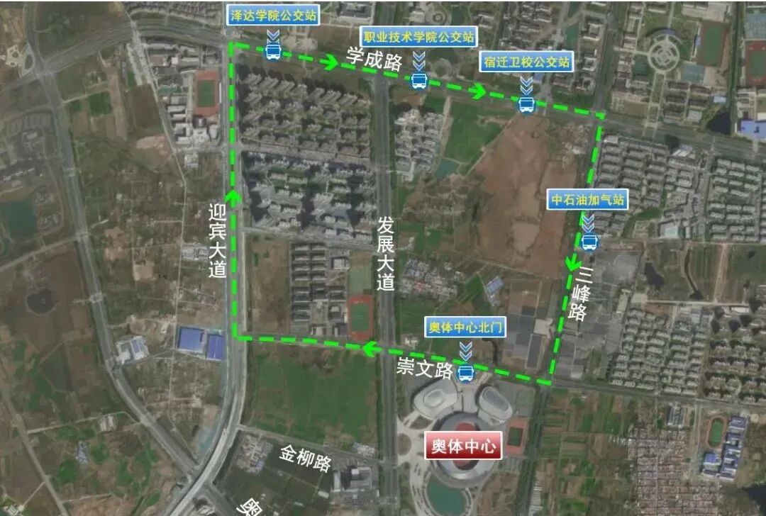 沿线接驳点:区政府广场南门、银河花园公交站点、宿迁海关公交站点、便民方舟公交站点、金鹏国际公交站点、江苏有线公交站点。