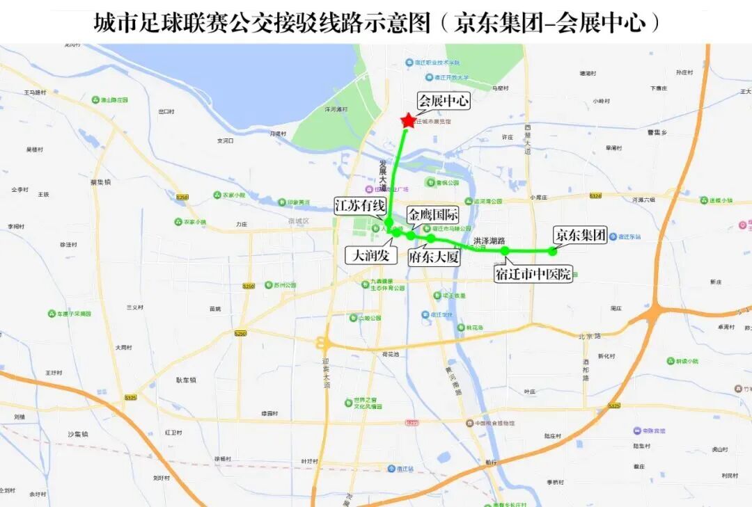 沿线接驳点:京东客服中心公交站点、宿迁市中医院公交站点、府东大厦公交站点、金鹰国际公交站点、大润发公交站点、江苏有线公交站点。