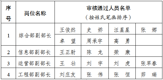 按照市交通集团所属单位2022年度中层管理人员竞聘上岗工作安排,竞聘上岗报名工作已于4月22日结束。停车场公司中层管理人员竞聘上岗工作领导小组办公室从报名人员的学历、从业经历、集团工作年限等方面,对每位报名人员进行了资格审查。现将进入市交通集团所属单位2022年度中层人员竞聘演说人员名单公示如下: