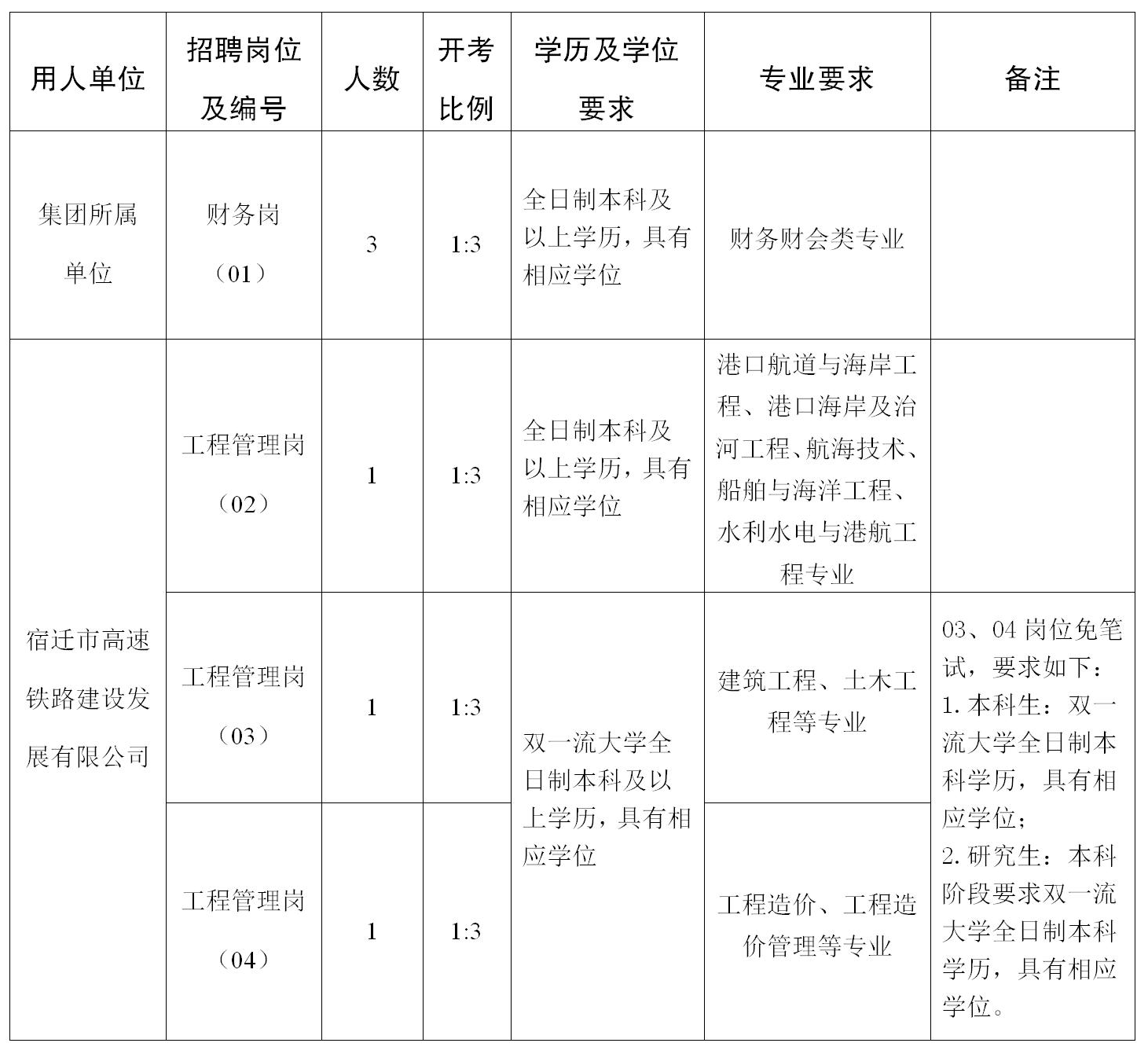 宿迁交通集团2022年度招聘拟录用人员名单公示